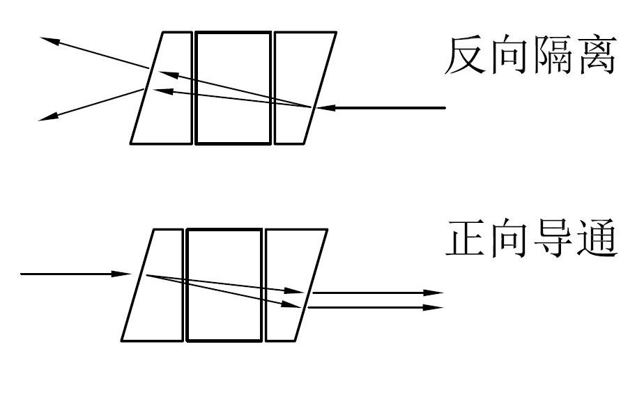 运用法拉第旋光效应制作的光纤隔离器,由位于中央的旋光芯CORE、两端的光纤准直器COLLIMATOR以及套管等组成。旋光芯CORE则由位于中央的法拉第晶体片、两端的晶体楔角片以及外围的磁管等组成。根据需要,旋光芯CORE可以设计针对不同工作波长,如果单级CORE的隔离度不足,还可以制作双级CORE。